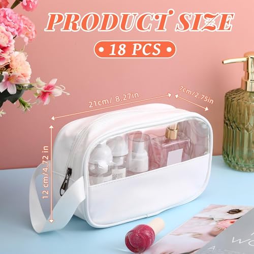 Tanlade 18 Pcs Clear Cosmetic Bags Bulk, Translucent Makeup Toiletry Bag for Women Waterproof Portable Cosmetic Bag Set Traveling Make up Organizer(White)