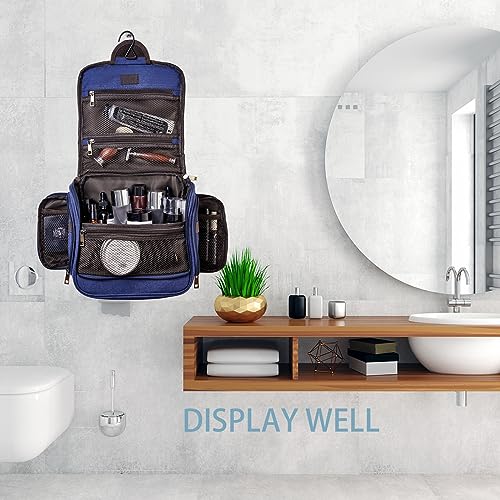 Canvas Toiletry Bag for Men Shaving Dopp Kit Bulk Travel Hanging Makeup Organizer with Sturdy Metal Hook Portable Cosmetic Bag for Women with Large Capacity Blue