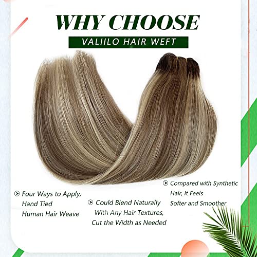 Weft Hair Extensions Human Hair, 16 inch 100g Ash Brown Highlighted Bleach Blonde Sew in Hair Extensions Real Human Hair Hand Tied Weft Hair Extensions Sew In Remy Hair Bundles Weave