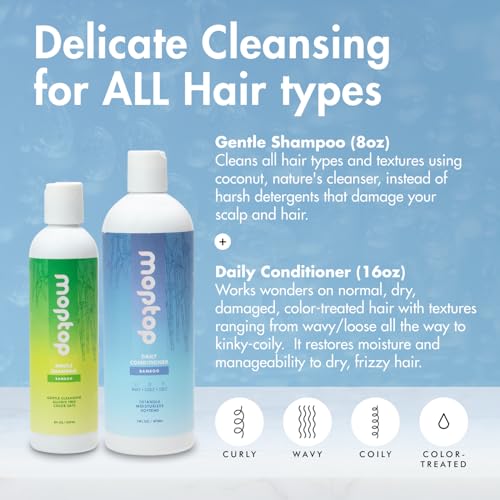 MopTop Sulfate Free Shampoo and Conditioner ? Curly Hair Natural Shampoo and Conditioner Helps Restore Dry Damaged Hair & Reduce Frizz, Paraben Free Natural Hair Products for All Hair Types (2pk)