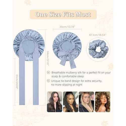 100% Mulberry Silk Bonnet for Women Hair Bonnet for Sleeping with Hair Scrunchy Elastic Tie Band Night Cap