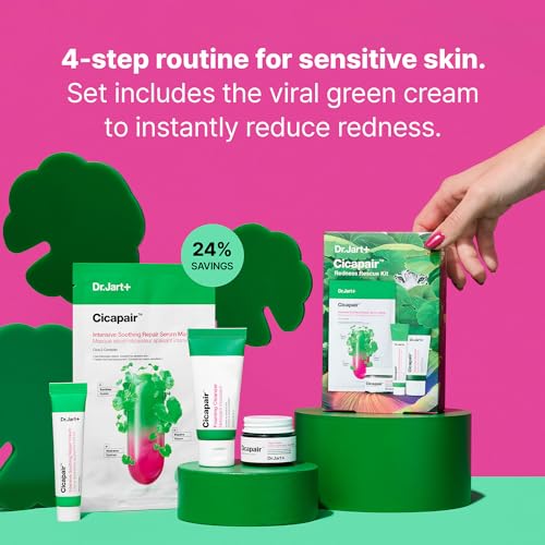 Dr.Jart+ Cicapair Redness Rescue Korean Skin Care Set, Travel Size Value Gift Set with Cicapair Color Correcting Cream, Face Wash, Cream Moisturizer, and Face Mask