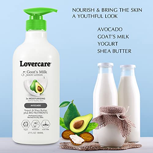 Lovercare Goat Milk Body Lotion for Dry Skin 27.05 oz Avocado (800ml) - Pack of 2¡¦