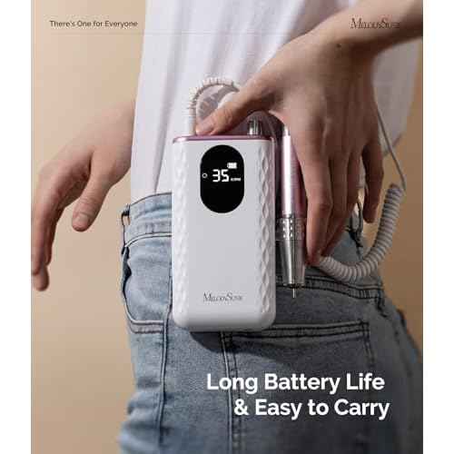MelodySusie Professional Clip-On High-Efficiency Cordless Nail Drill,MM400D 35000RPM Rechargeable E-File with Gem-Cut Design and Lightweight Handpiece for All Manicure Shaping, Gel Removal & Salon Use