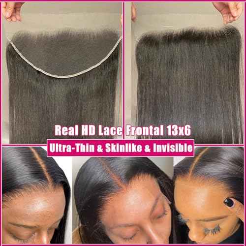 13x6 Real HD Lace Frontal, 0.11mm Ultra-Thin Skinlike Invisible Swiss HD Lace Frontal Pre Plucked with Baby Hair Brazilian Virgin Hair Ear to Ear 13x6 Lace Frontal Human Hair 20 Inch