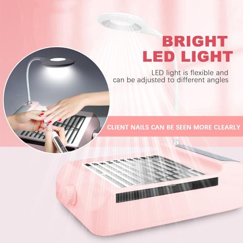 AONOLOVO Nail Dust Collector, Adjustable Suction, Professional Nail Fan Dust Collector with Light Manicure Dust Collector Nail Tech Vacuum Cleaner Machine for Acrylic Nails Removal, Pink