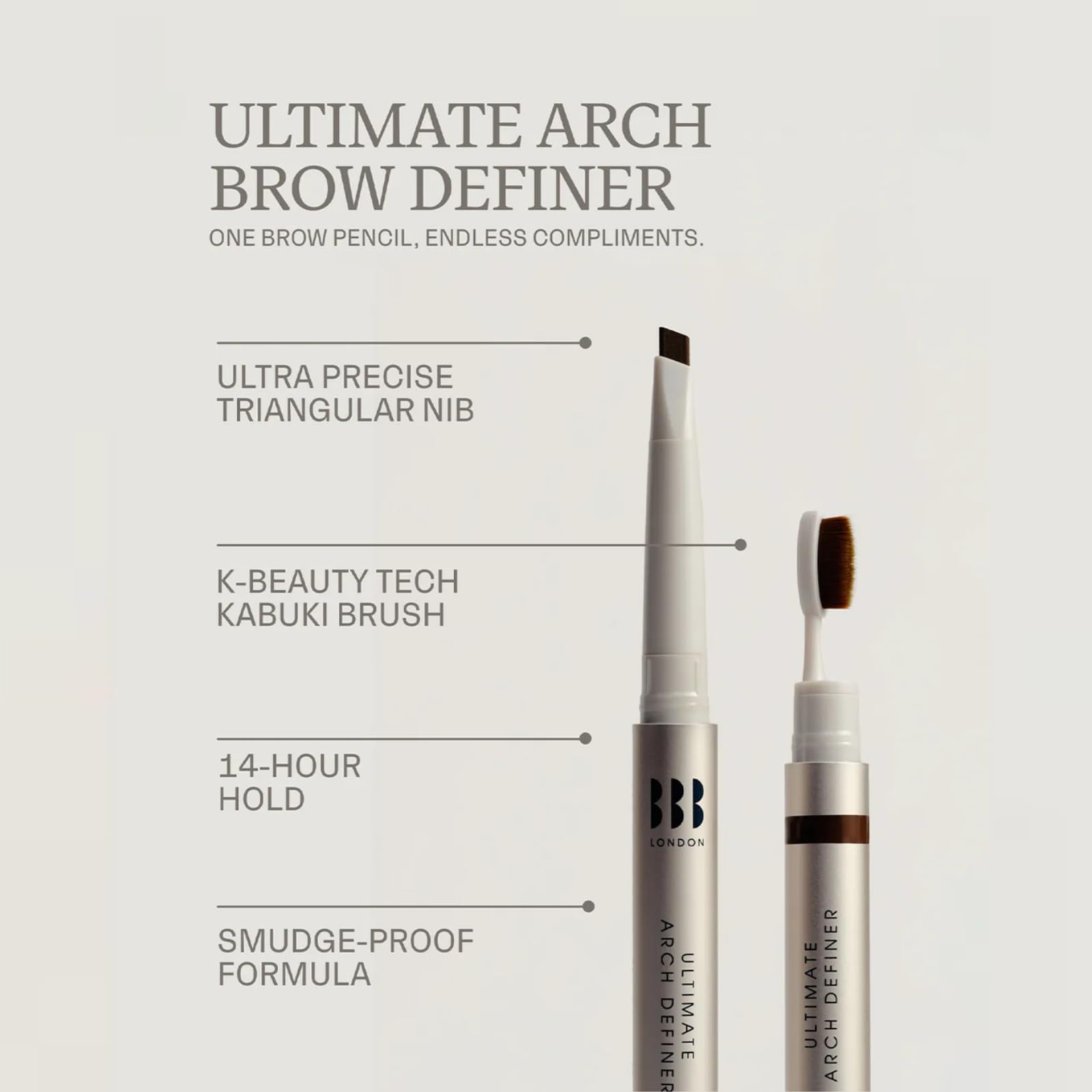 BBB London Ultimate Brow Arch Definer Triangular Eyebrow Pencil with Kabuki Brush | Award Winning, Smudge-Proof, Sweat-Resistant Brow Shaper for Natural, Defined, Full Arches (Cardamom)