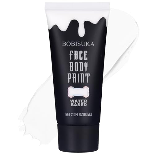 BOBISUKA White Face Body Paint, Water Based Face Painting for Art Theater Halloween Party Cosplay Clown SFX Makeup for Women Adults, Non-Toxic Washable