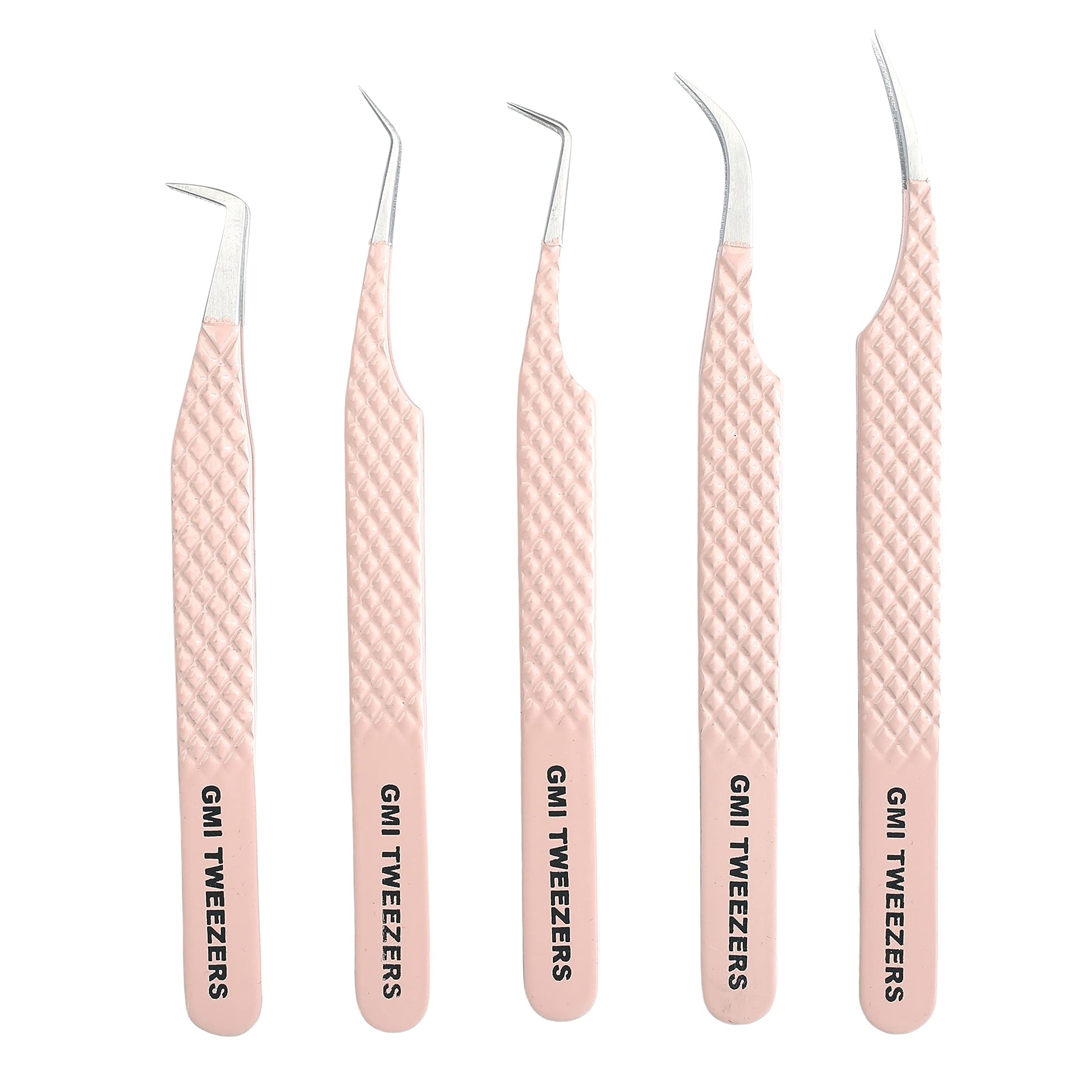 GMI TWEEZERS GMI Lash Tweezers - Set of 5 Eyelash Tweezers- Stainless Steel Eyelash Extension Tweezers - Multipurpose Lash Tweezers T2233 Tweezer
