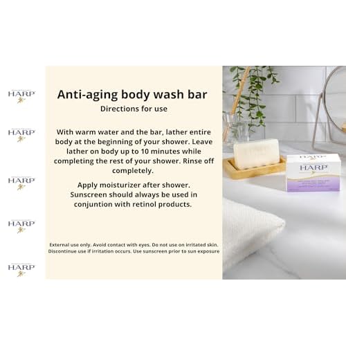 HARP Anti-Aging Body Wash Bar With Retinol + Niacinamide, Vitamin E, Hyaluronic Acid. 100% Syndet Base. Soap/Lye-Free and FRAGRANCE FREE (3-Pack, Anti-Aging Serum)