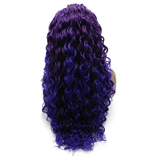 iwonawig Iewig Long Curly Ombre Purple Wig for Women Synthetic Lace Front 2 Tones Heat Friendly Wig