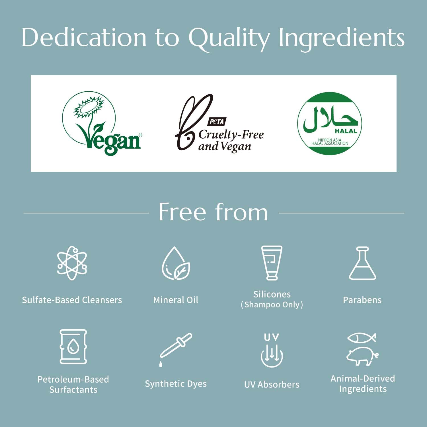 - Certified Vegan, Cruelty-Free (PeTA), and Halal
