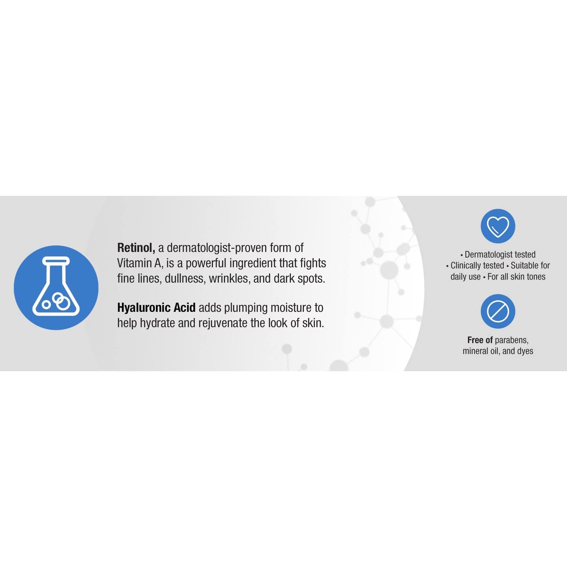 Details: About this item 1.7-ounce jar of Neutrogena Rapid Wrinkle Repair Retinol Regenerating anti-age face & neck cream moisturizer helps fight the signs of aging by fading the look of deep wrinkles, including forehead & cheek wrinkles Packaging May Vary. Rich face moisturizing cream features our highest concentration of retinol, a dermatologist-proven ingredient that fights fine lines, dullness, wrinkles and dark spots The rich moisturizing wrinkle repair cream with clinically-proven results instantly hydrates for smoother skin & smooths the look of fine lines & reduces the look of dark spots in just one week Anti-aging face cream from dermatologist-recommended skin care brand has been dermatologist-tested, suitable for daily use for all skin tones & is formulated without parabens, mineral oil & dyes Recommended for use as part of regular anti-wrinkle skin care routine & gentle enough for daily use on all skin tones, it comes from the #1 retinol brand used most by dermatologists