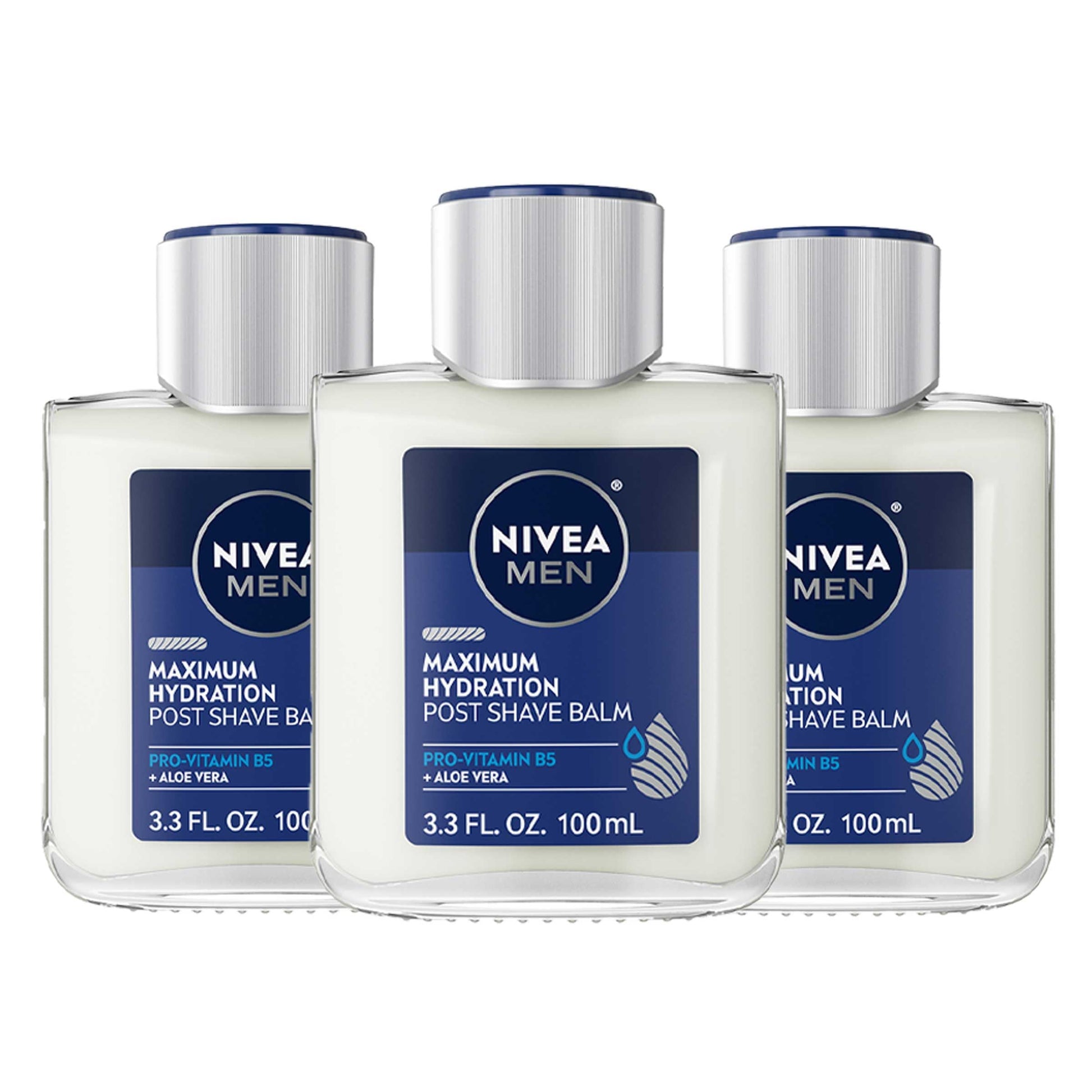 - Includes three (3) 3.3 fluid ounce bottles of NIVEA MEN Maximum Hydration Post Shave Balm