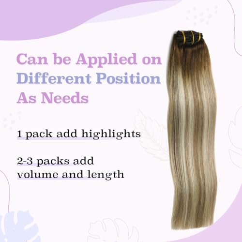 Sindra Hair Extensions Real Human Hair Clip ins 14Inch Balayage Dark Brown Ombre Light Brown Blonde Clip in Hair Extensions Real Human Hair Remy Straight For Woman 100G 6Pcs(clip#3/8/22-14inch)
