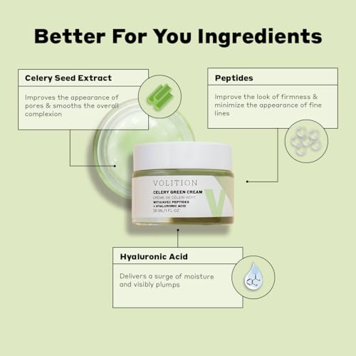 Volition Beauty Celery Green Cream with Hyaluronic Acid + Peptides - Purifies, Minimizes Pores and Controls Oil - 1oz