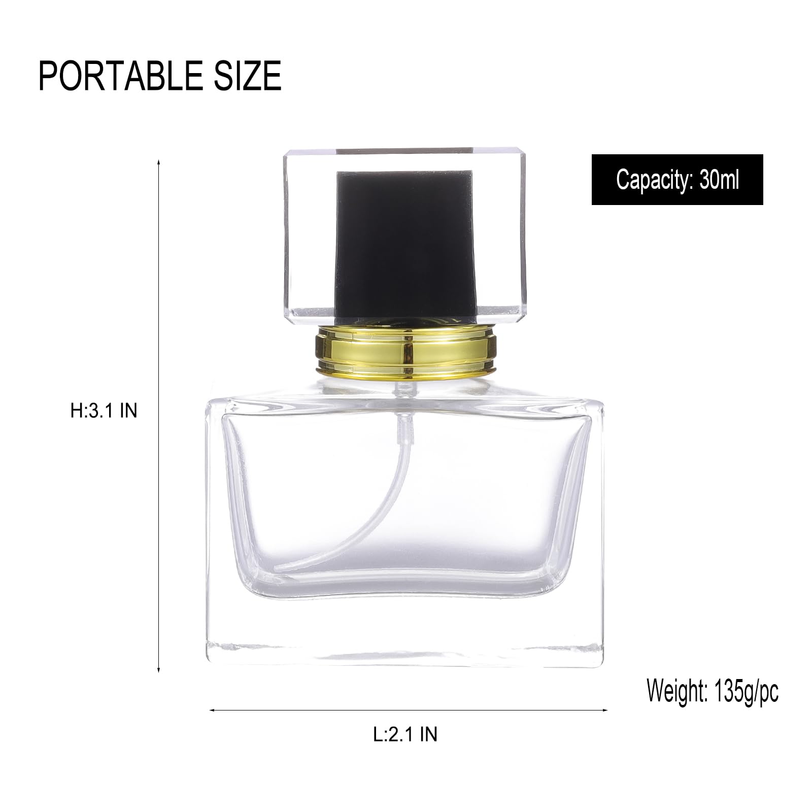 - High-end look and fashional design make you exquisite and elegant. Unique and luxurious cap, square glass perfume bottle , high clear body, refillable perfume bottle design to check the volume at any time.