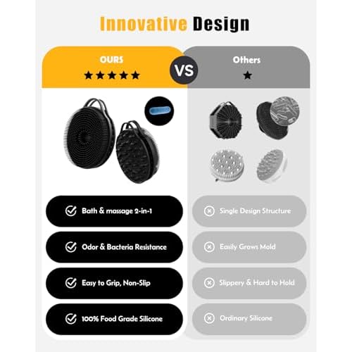 2 in 1 Silicone Body Scrubber, Anti Cellulite Massage Scrubber, Exfoliating Shower Brush for Men & Women, Removes Dead Skin, Reduces Cellulite, Improves Circulation, Fast Dry, Non Slip (1PC, Black)