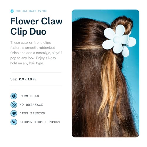 Gimme Beauty Medium Hair Clip - Flower Claw Clip Duo - Aesthetic Accessories for Women - Gentle-Grip Daisy Accessory with Non-Slip Finish - Colorful Claw Perfect for Long Hair - 2 Pack, Blue/Tan
