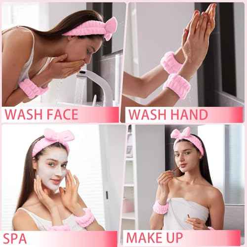 16pcs Skincare Headband Set, Headband Set for Face Washing Spa and Makeup, Including 1 Hairband, Wristband, 3 Hair Claw Clips and 10 Hair Ties, with Box, Gift for Women and Girls, Pink