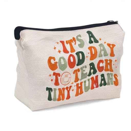 Ayxvt Lovely Face It's A Good Day To Teach Tiny Humans Decor Cosmetic Bag,Cute Colorful Letter Decorative Women's Makeup Bag Zipper Pouch Travel Toiletry,Gifts For Teachers Women Girls
