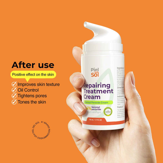 Piel del Sol cosmetics Acne Cleansing Cream & Repairing Treatment - Face & Body Skincare with Benzoyl Peroxide, Sweet Almond Oil, Tea Tree Oil, Aloe Vera Extract for Acne Spot Treatment, 50ml