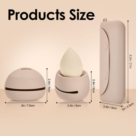 COOL-ANGLE Silicone Makeup Brush Holder And Beauty Sponge Case, Travel Makeup Brush Case With Magnetic Closure, Makeup Sponge Holder 2 In 1 Stand Storage For Quick Drying Khaki