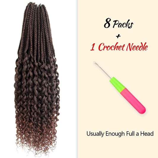 SECPOCPONY Long Boho Curl Box Braids Crochet Hair 24 Inch 8 Packs Pre looped French Curl Braiding Hair for Black Women Crochet Goddess Box Braid with Curly Ends (T30)