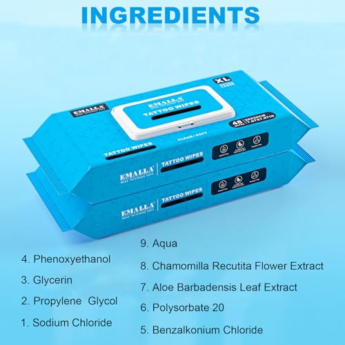 Emalla Tattoo Wipes, Large 60pcs All in One Premium Tattoo Care Wipes to Clean Skin and Tattoo Aftercare Tattoo Supplies (3 Pack)