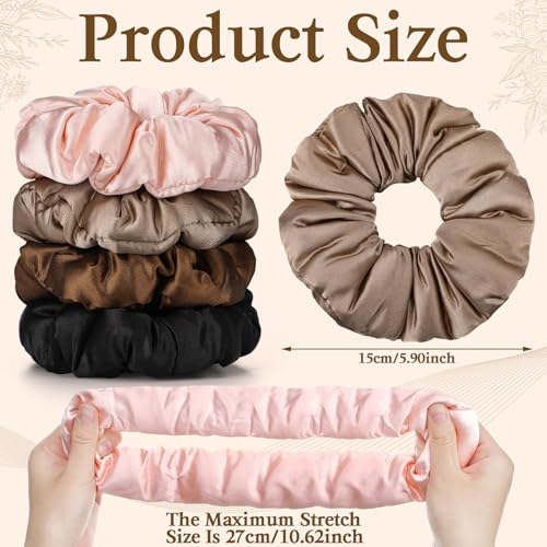 4Pcs Large Satin Hair Scrunchies, Big Pillow Scrunchies for Women Girls Silk Sleepy Scrunchie Ponytail Holders for Thick Hair