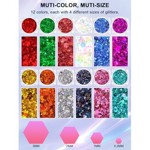 Body Hair Face Glitter for Women Teen Girls Kids, 12 Colors Face Painting Makeup Kit, Christmas Mardi Gras Valentines Accessories for Women, Party Favors, Rave Accessories, Festival Essentials