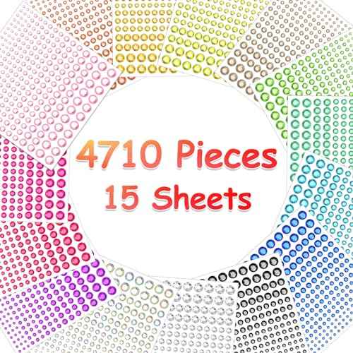 4170 Pcs 6 Sizes Self Adhesive Rhinestone Gem Stickers for Hair Face Body Makeup, Bling Stick on Jewels for DIY Craft, Card Decorations, 15 Colors