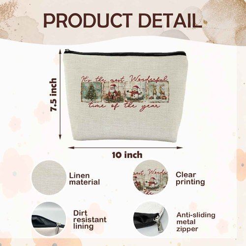 ignytiger Christmas Makeup Bag, Christmas Santa Gifts Cosmetic Bags for Women, Winter Holiday Santa Snowman Reindeer Xmas Tree Canvas Makeup Pounch Zipper Pouches for Purse