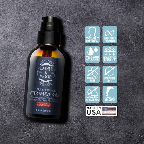 Lather & Wood - Barbershop Aftershave for Men - Long-Lasting Fragrance, Non-Greasy Formula, Easy Pump Dispener, Gentle and Subtle Scent