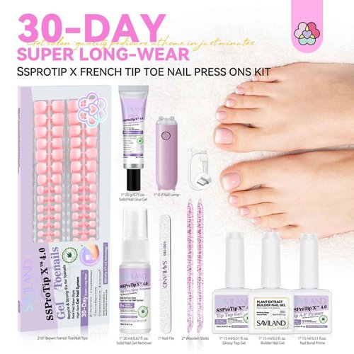 SAVILAND Press On Toenails Kit: 216 PCS Nail Press on Toenails French Tips Pink White Toe Gel Toenails Nail Tips Press on Toenails for Women Solid Nail Glue Gel for Toe Nail Extensions 18 Sizes