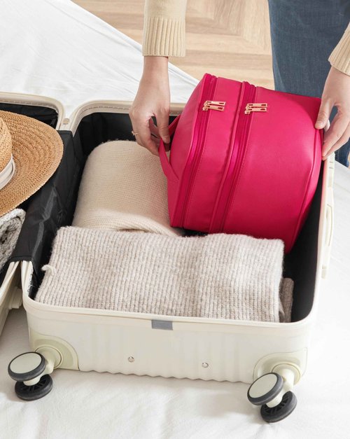 Makeup Bag for Women X-Large Travel Makeup Bag Organizer Portable Toiletry Bag Cute Makeup Bags Waterproof Leather Cosmetic Bag Makeup Case with Removable Dividers, Rose Red