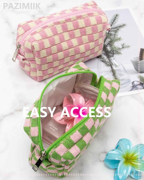 PAZIMIIK Checkered Makeup Bag for Purse Portable Zipper Make Up Pouch Small Cosmetic Case for Travel Accessories Pink Green