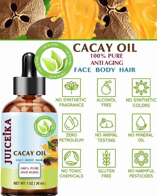 Juiceika CACAY OIL 100% Pure Natural Virgin Unrefined Cold-Pressed Carrier Oil 1 Fl oz 30 ml For Face, Skin, Body, Hair, Lip, Nails