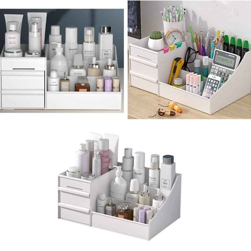 Jilukibo Large Capacity Makeup Organizer for Bathroom Bedroom, Cosmetic Storage Box with Drawers, Desktop Makeup Container for Jewelry Lipstick Skin Care (White)