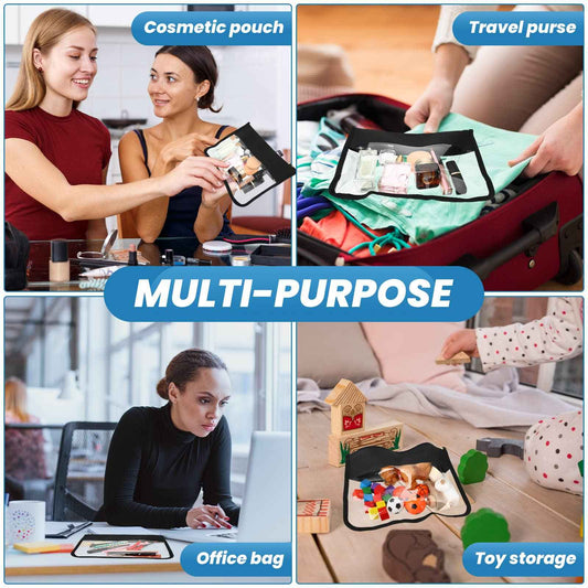 Teling 8 Pieces Clear Makeup Bags DIY Chenille Letter Pouch Clear Zipper Pouches Travel PVC Oxford Cloth Cosmetic Portable Waterproof Makeup Storage Bag Toiletry Snack Organizer for Women Girls, Black