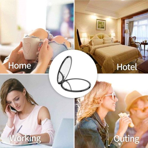 Gospire 4" Ultra-Thin Pocket Makeup Mirror for Travel, 1X/10X Double Sided Magnifying Portable Compact Handbag Handheld Round Foldable Cosmetic Mirror for Women (Black)