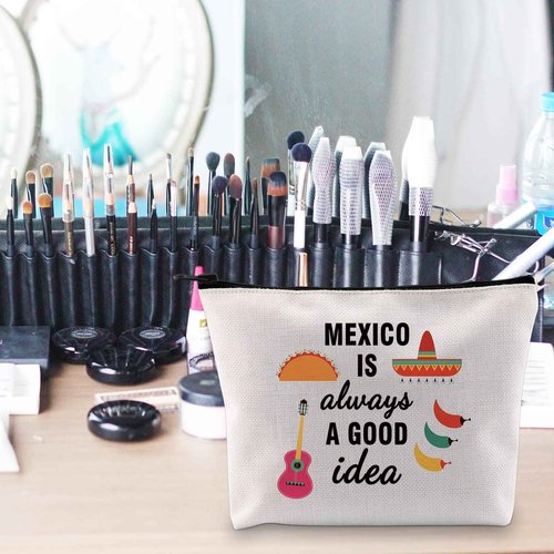 POFULL Mexico Bachelorette Party Gift Mexico Vacation Birthday Gift Mexico Is Always A Good Idea Zipper Makeup Bags Travel Toiletry Bag Accessories (Mexico Is Always A Good Idea bag)