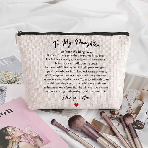 Pwrlveiut Wedding Gift for Bride from Mom Bridal Shower Gift Travel Makeup Bag Bridal Gifts for Bride Keepsake for Daughter from Mother to My Daughter on Your Wedding Day