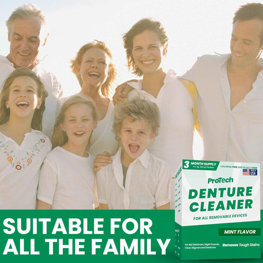Protech Denture Cleaner 7g (3-Month Supply) Denture Cleanser Foils for Retainers, Nightguards, Mouthguards, and Dentures, Nicotine, Coffee and Iron Cleaning Foils, No Tablets, Long Lasting Packets