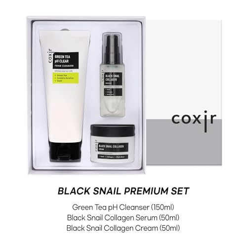 coxir BLACK SNAIL GIFT SET | Birthday Gifts | Black Rice, Snail Mucin, Collagen, Peptide | Firming, Moisturizing, Repairing, Korean Skin Care,Holiday Gift Set,Christmas Gift Set