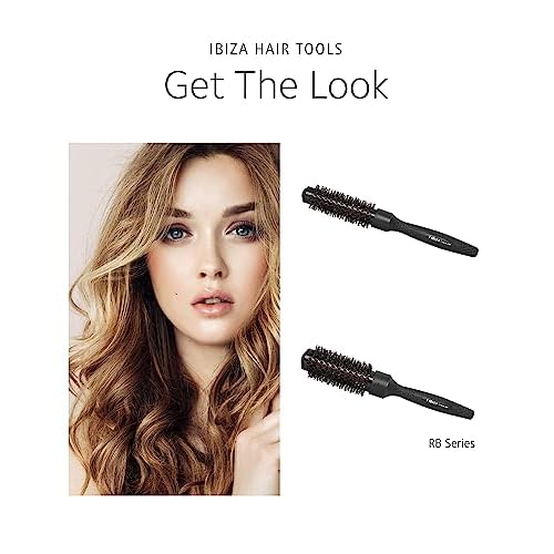 Ibiza Hair Ceramic Round Brush (RB Series) | Carbon Fiber/Nylon Bristles & Beech Wood Core to Absorb Heat & Protect Hair | Adds Shine to All Hair Types | Ideal for Volume & Waves