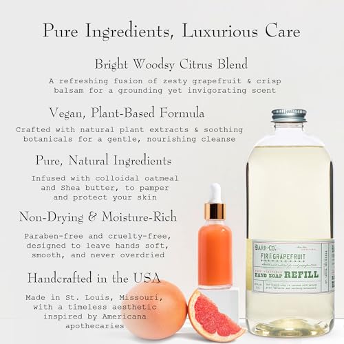 BARR-CO. Hand Soap Refill ? Natural Liquid Soap with Moisturizing Botanicals, Vegan & Plant-Based, Refreshing Citrus & Balsam Scent, for Kitchen & Bathroom, Fir & Grapefruit 32fl oz