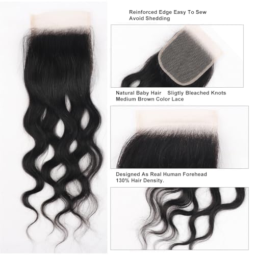18 Inch 4x4 HD Lace Closure Brazilian Virgin Human Hair Natural Wave Transparent Lace Closure Pre Plucked with Baby Hair Free Part Natural Wave Lace Closure, Black