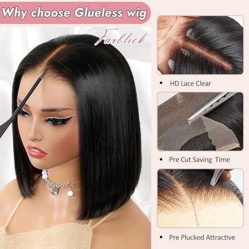 Bob Wig Human Hair 14 Inch Glueless Wigs Human Hair Pre Plucked Pre Cut 6¡¿4 HD Lace Front Wigs for Women 180% Density Short Straight Wig Ready to Wear
