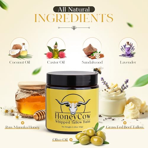 4oz Beef Tallow for Skin & Face | 100% Grass-Fed Tallow Face Moisturizer | Natural Beef Tallow Balm for Sensitive Skin